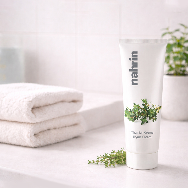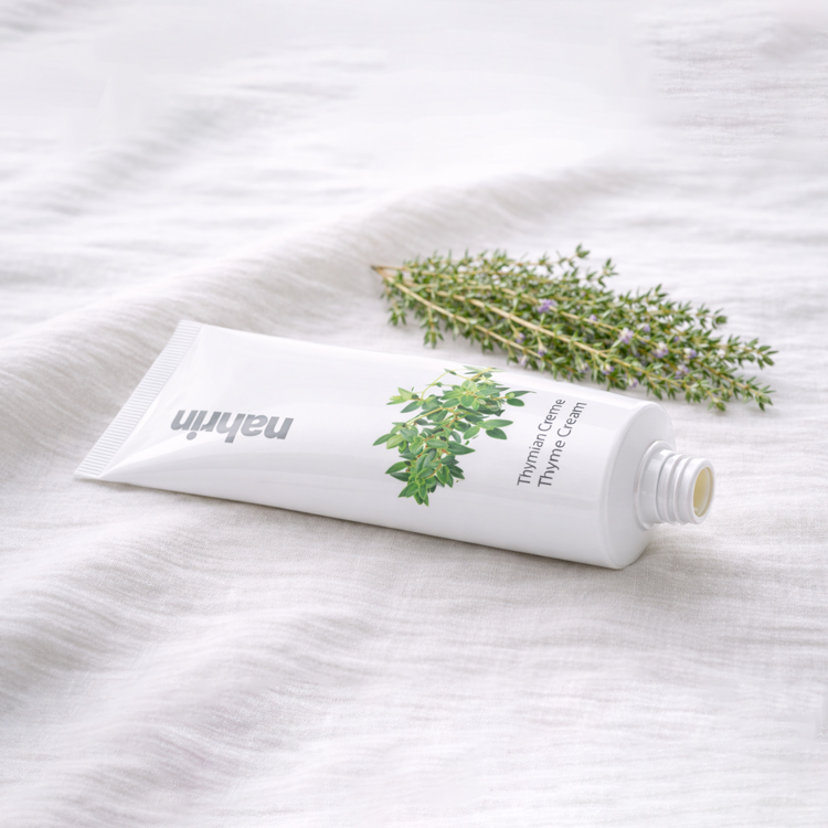 タイムクリームはタイムから抽出したタチジャコウソウ葉水をベースに大豆オイルなどの保湿成分を配合。軽めのテクスチャーとともに肌馴染みが良くとてもなめらか。脂性肌や乾燥肌の方にも。