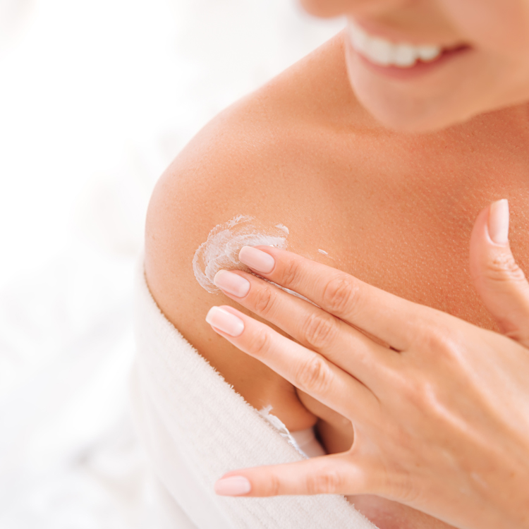 適量を手にとり、首や肩、胸元など気になる箇所に塗ってください。