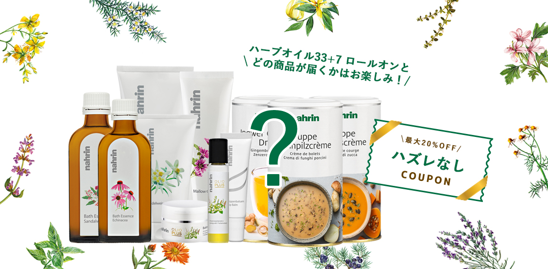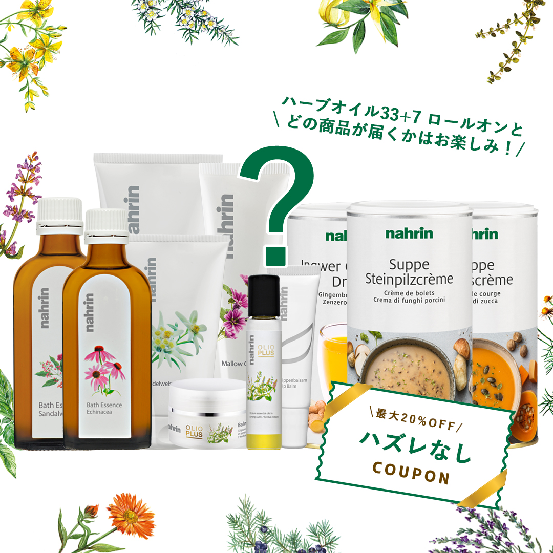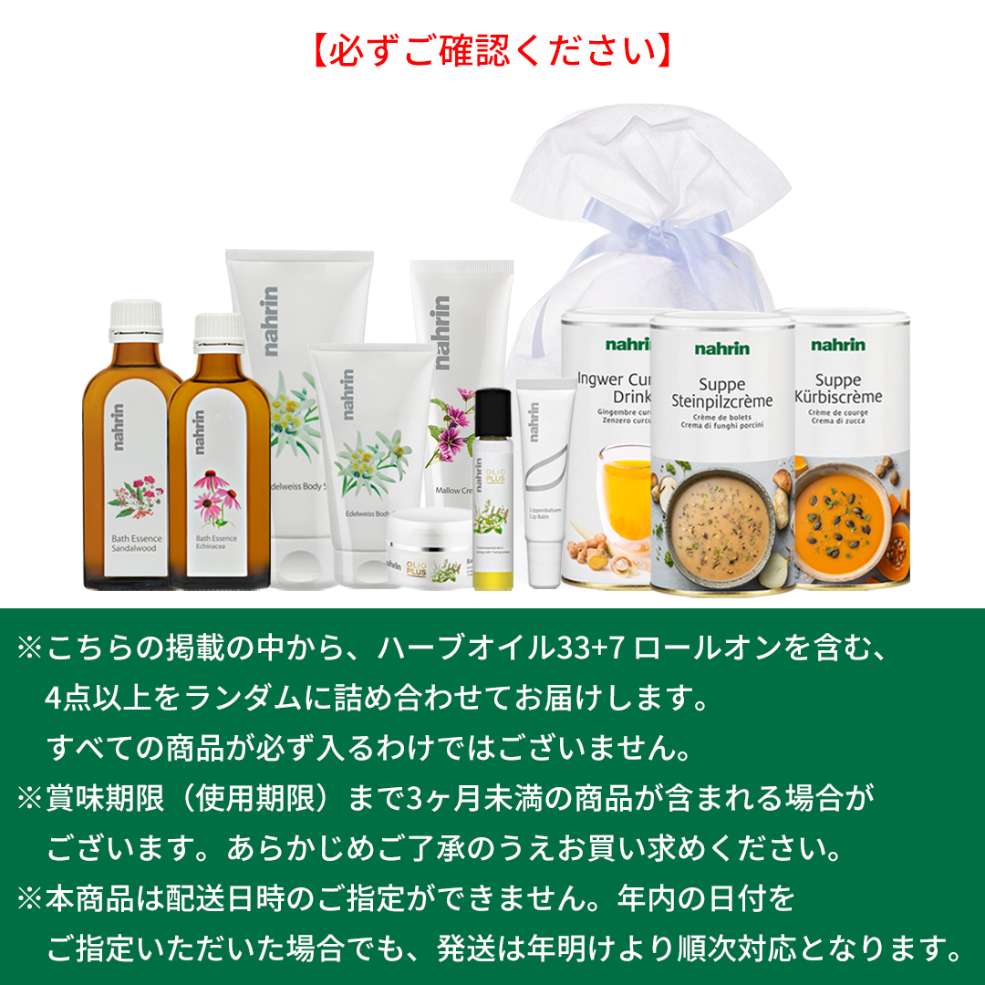 ナリンの人気アイテム『ハーブオイル33+7 ロールオン』が必ず入る、とてもお得な福袋です。