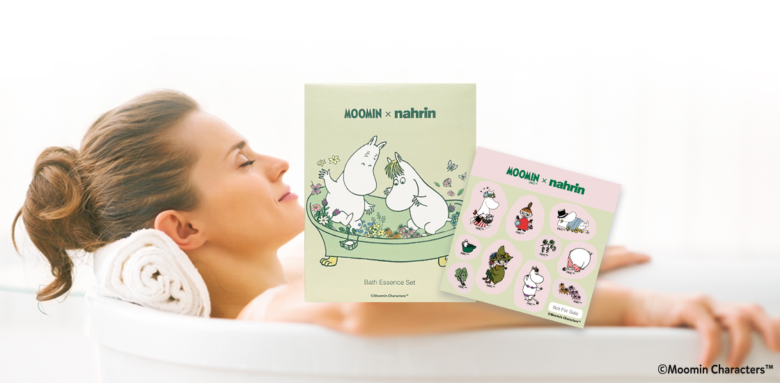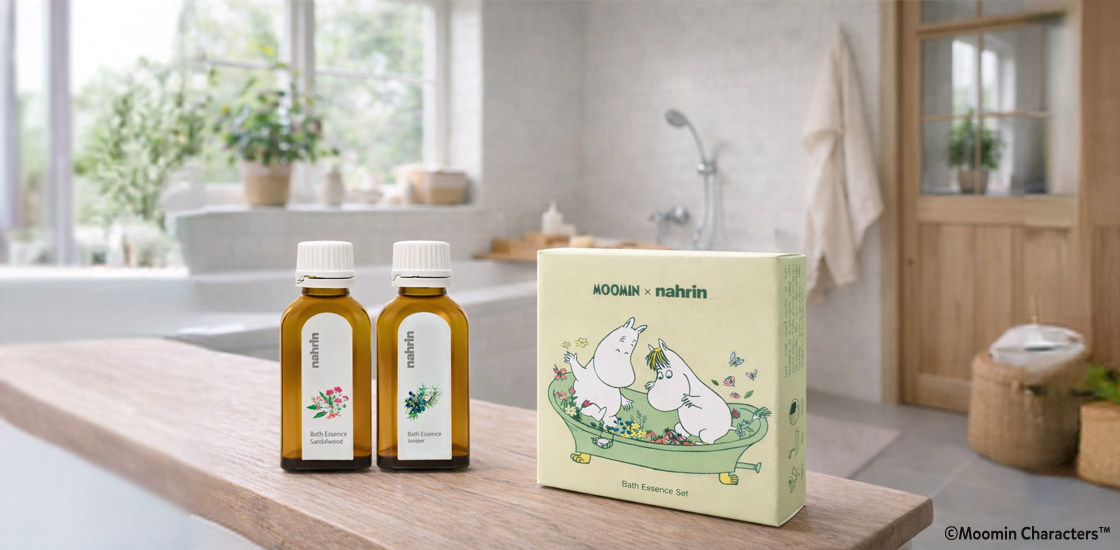 今回限定のオリジナルパッケージでは、ナリンならではのハーブの香りをたのしむ日常を、お風呂をたのしむムーミンたちのやさしい日常に重ね、表現しています。